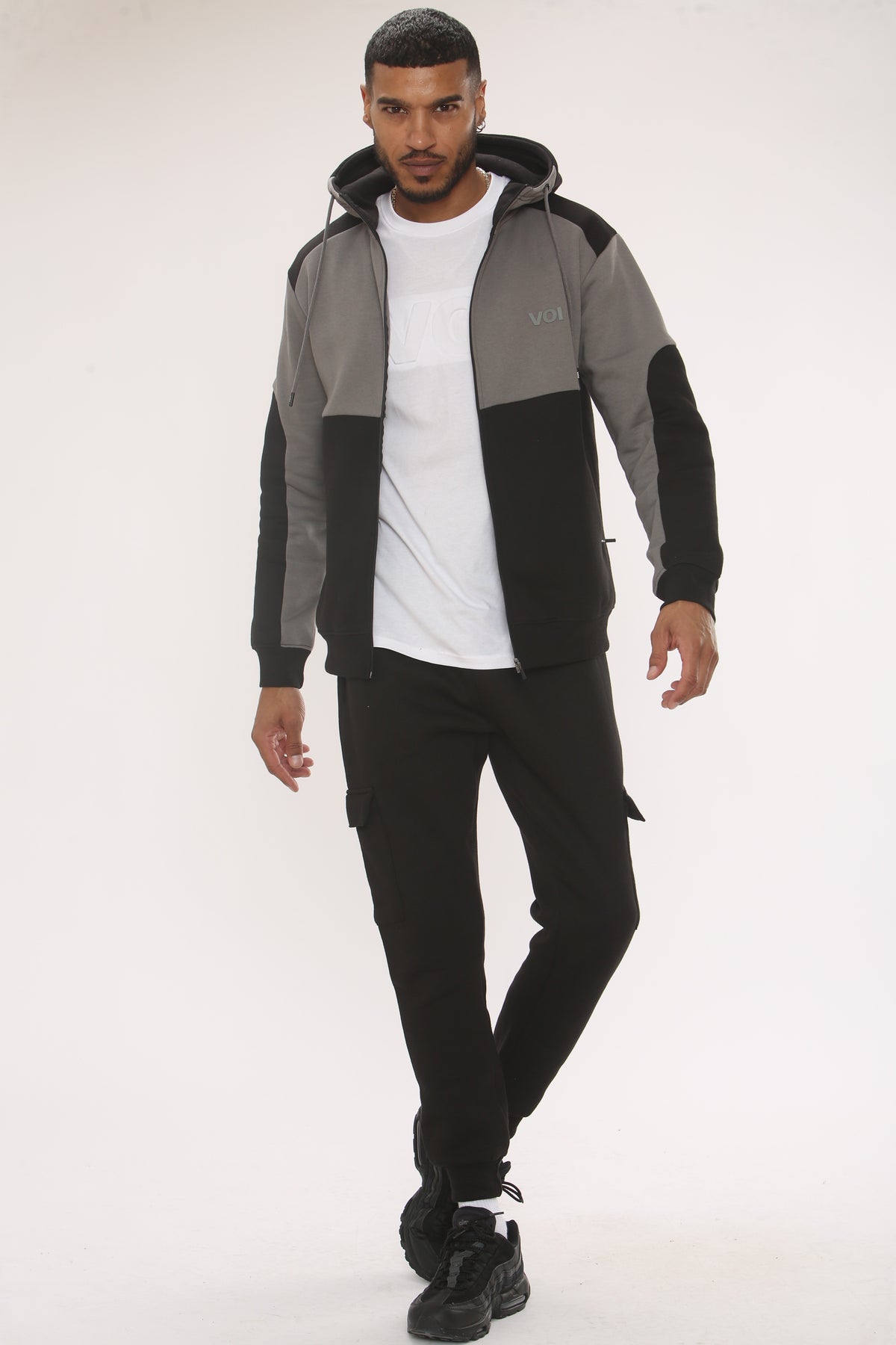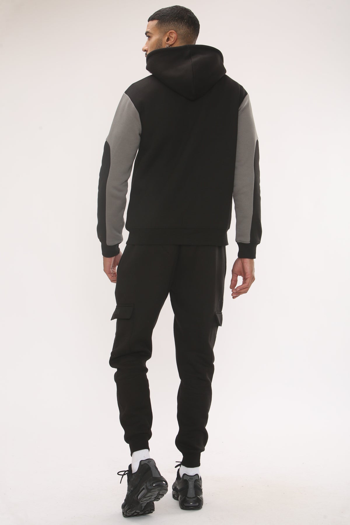Meet the new go-to casual uniform. Combining modern utility with soft, fleece comfort, this men's tracksuit set is engineered for seamless movement and everyday versatility. The set includes a zipped hoodie and cargo performance joggers in a multicolour panel design, perfect for any activity from training to relaxing.